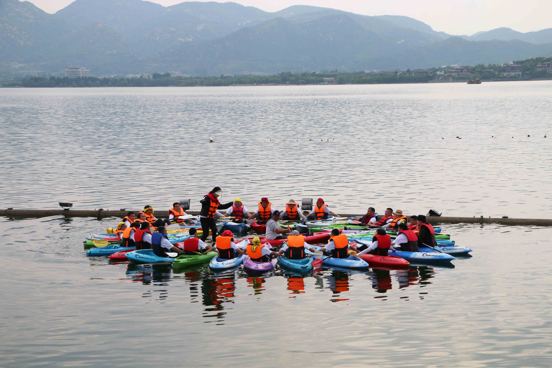 活动中全体职工分为两个团队,上午通过开展合力建塔、钻绳圈、明七暗七等小游戏,既有效锻炼了身体,又加深了新老员工的友好关系,增强了员工的归属感。下午全体职工驾驶皮划艇在雪野湖中游弋,进行了艇上漫步、竞速夺球等水上活动。每支队伍充分发挥协作精神,不怕艰难,出色地完成一个又一个任务。